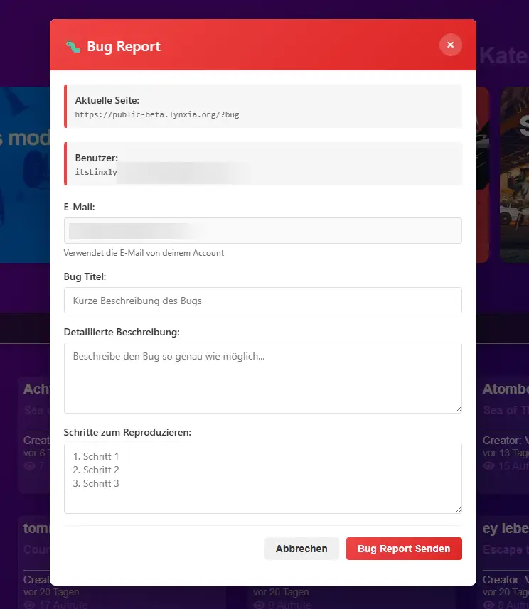 Viel zu umständlich immer einen Bug Report zu schreiben im Discord. Daher wird es mit v44 die Möglichkeit geben mit einem Button im Header direkt einen Bug auf der Seite zu melden ohne groß rumgeschreibe.